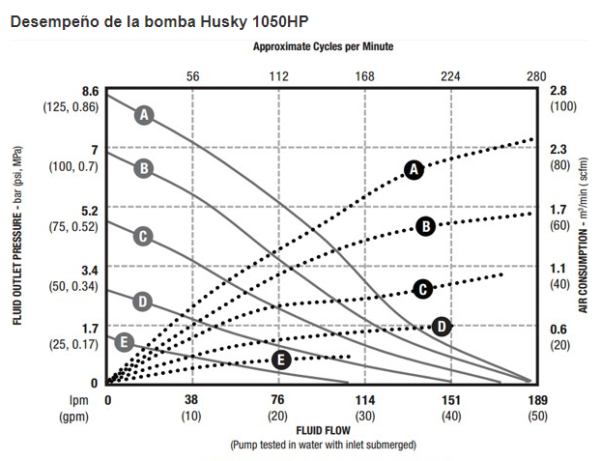 - Máximo caudal: 50 gpm (189 lpm)